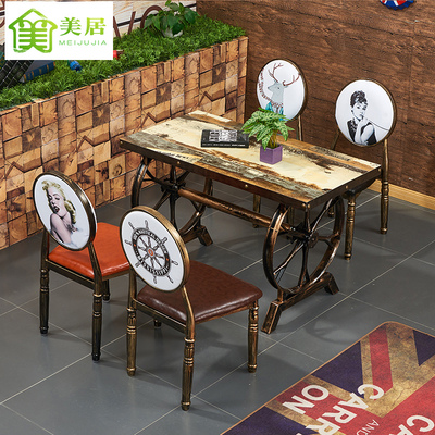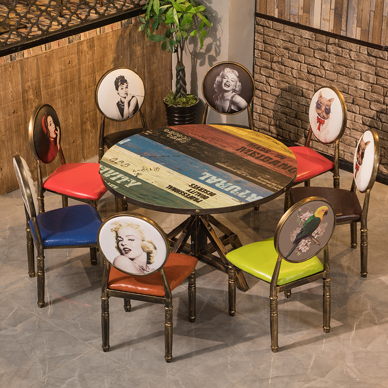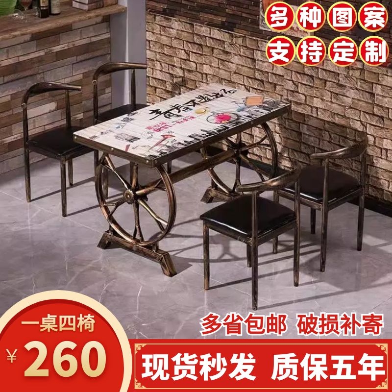 Retro hotel table and chair combination commercial fast food restaurant snack bar table and chair milk tea shop table and chair barbecue restaurant table and chair combination