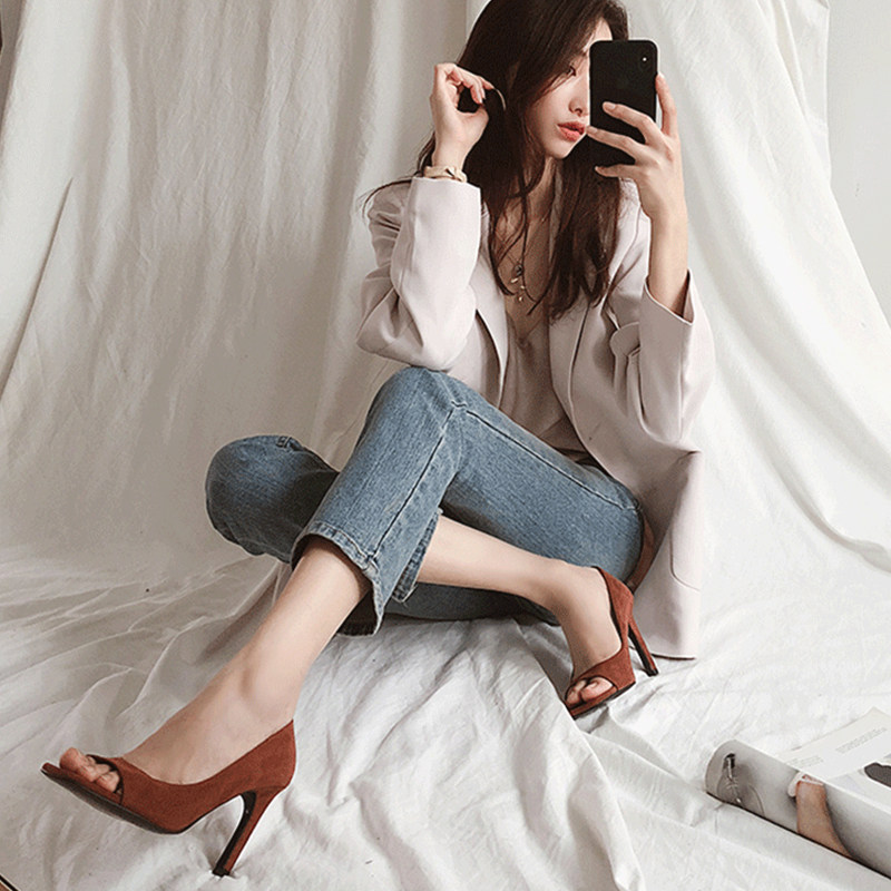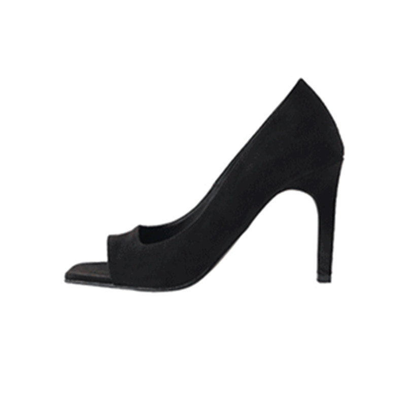2021 Summer new 100 hitch High heel Sexy Dew Heel Square Head Fish Stomp Shoes Black Career Single Shoe Woman Side Empty