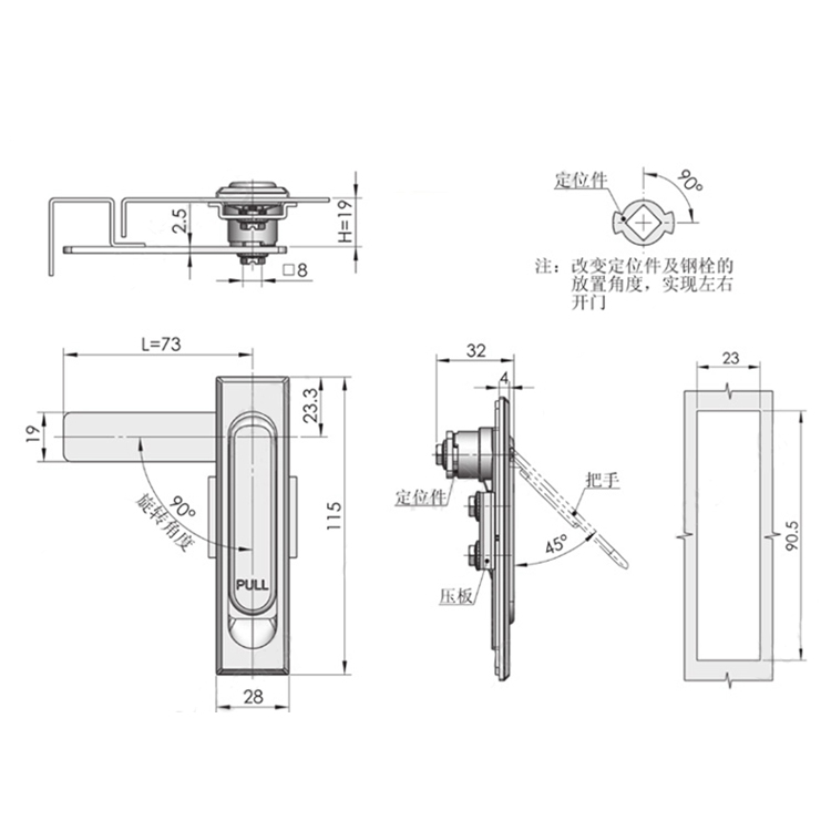 MS717-2 server cabinet totem cabinet door lock file cabinet door lock black gray matt