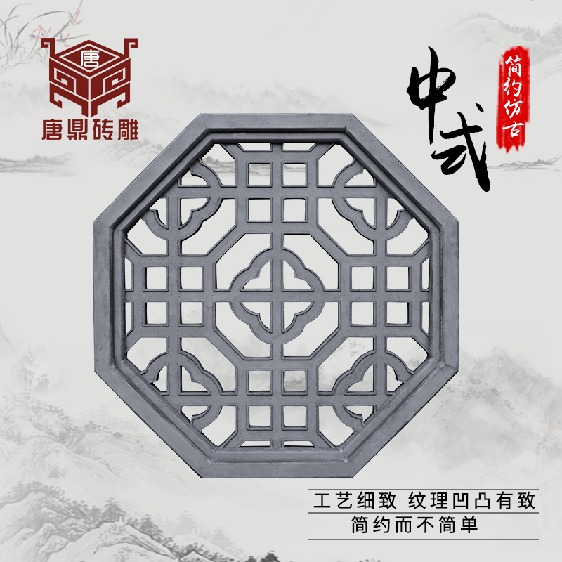 Cement flower window brick carved wall decoration antique Chinese hollow window octagonal window background wall lattice window