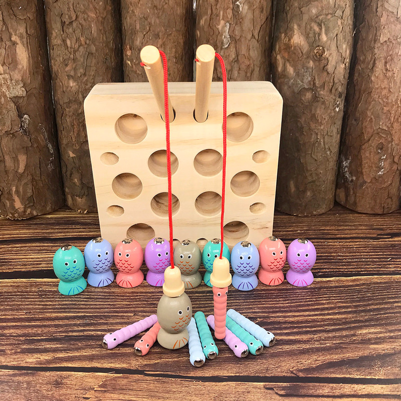 Woody Magnetic Mushroom Catch Insect Toy Woody Magnetic Solid L Fishing Toy Woody Magnetic Fishing Catch two-in-one wood hands-on nip Fishing Two-in-one Small Belle Fishing Clip Bead Toy
