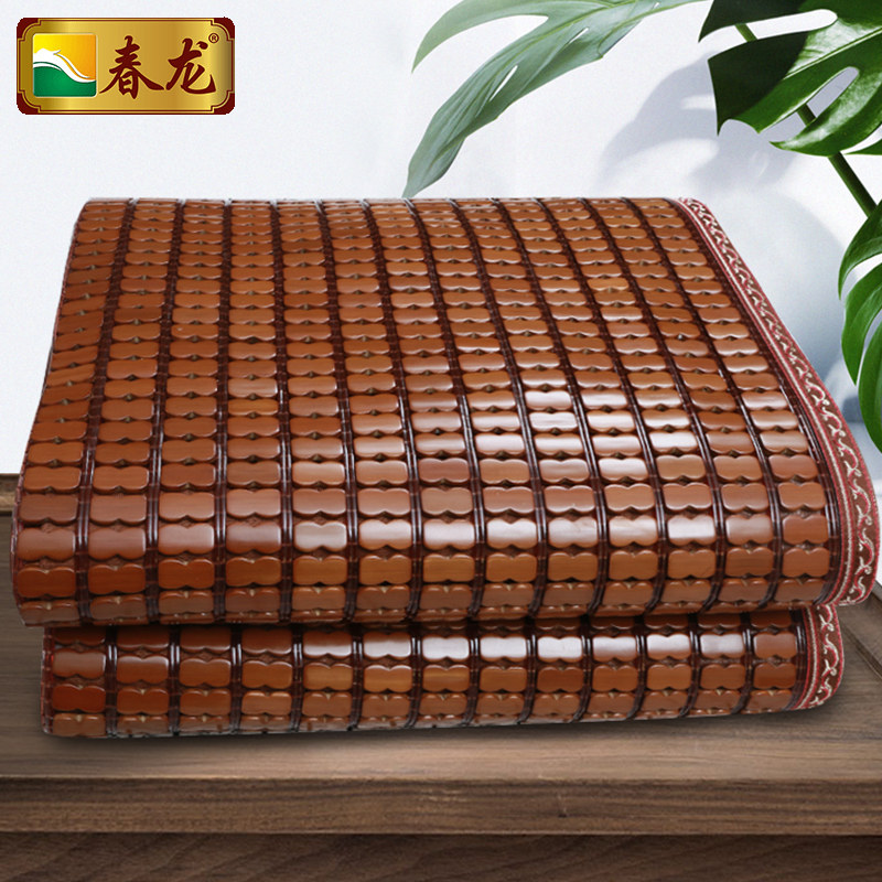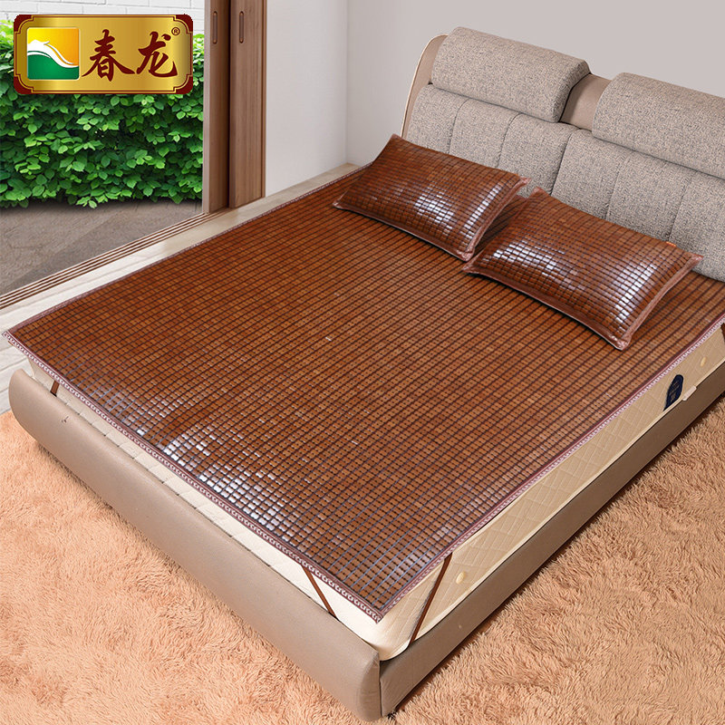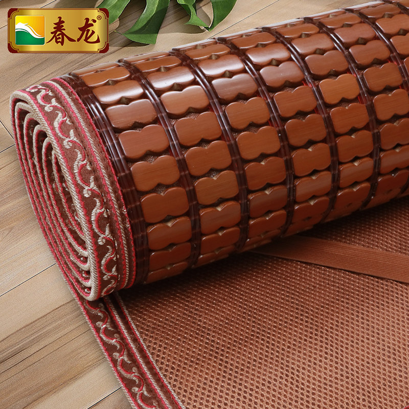 Chunlong Mahjong mat Summer 1 5m folding 1 8m double bed Fuli red makeup three-piece set bamboo piece mat