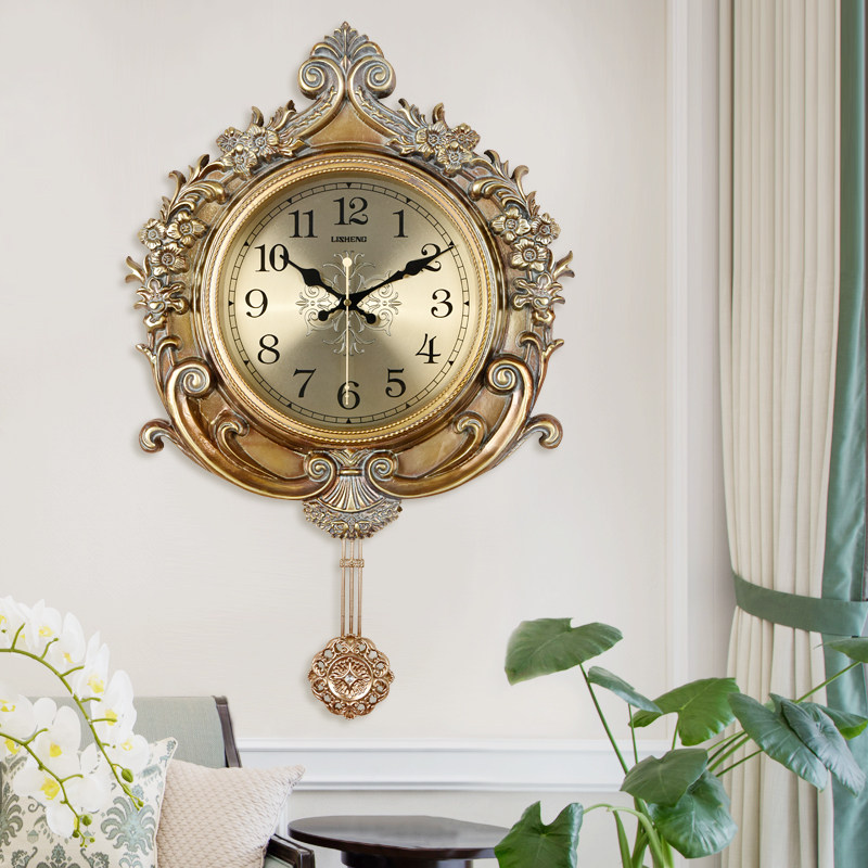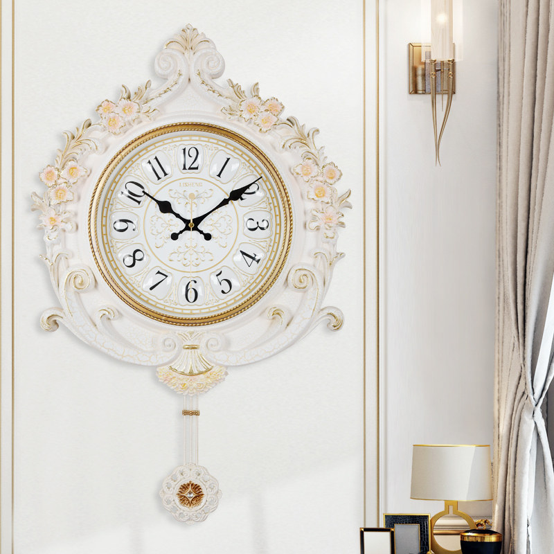 European pastoral pendulum clock Living room mute wall clock American atmosphere decorative clock Creative household fashion quartz clock
