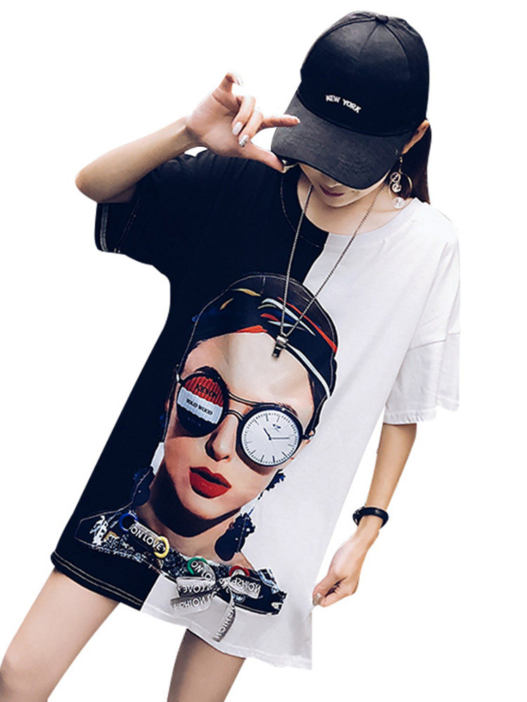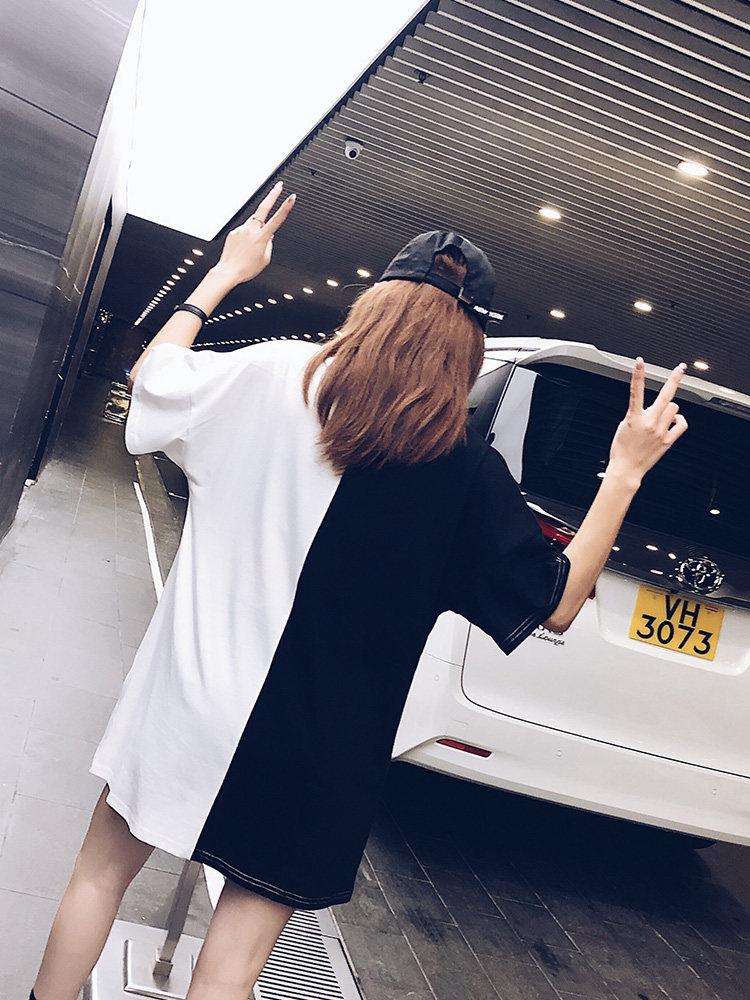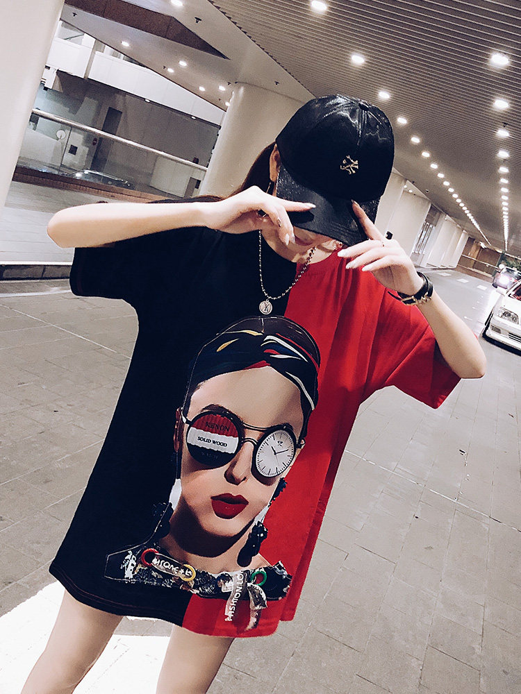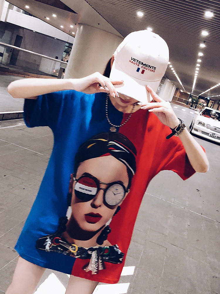 2022 summer dress new European goods large version cotton ins short-sleeved t-shirt female Hong Kong flavor Harajuku loose net red medium and long version tide