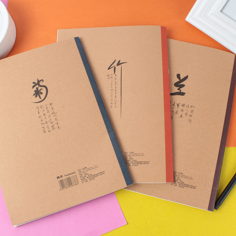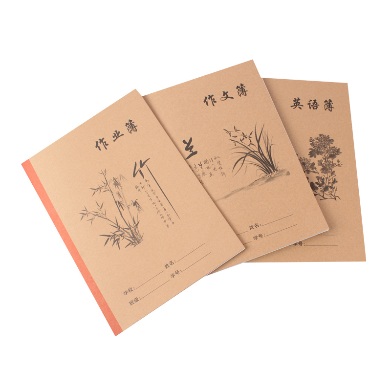 Primary school students use plum, orchid, bamboo and chrysanthemum ancient style B5 cowhide exercise book, language text, composition text, English book, homework book