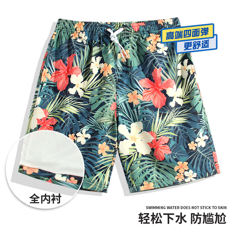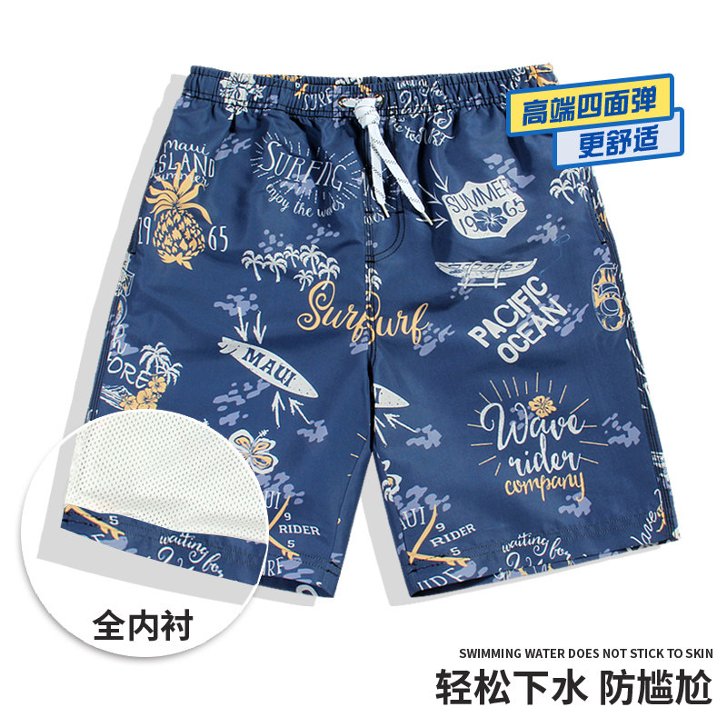 Men's loose-fitting lined beach pants Summer seaside vacation quick-drying swim trunks plus-size double-layer anti-embarrassment swim trunks