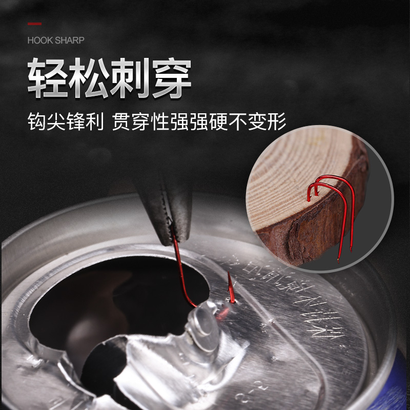 Han Ding fish hook box is equipped with barbed fishing hook Red sleeve red sleeve fish hook Fishing accessories hook fishing hook 50 pieces