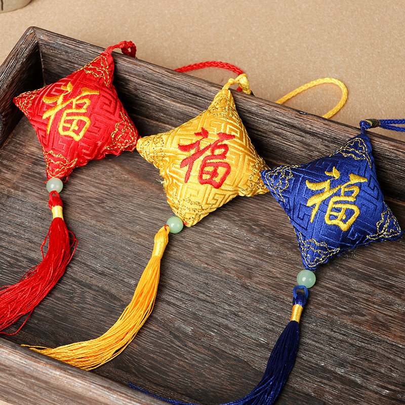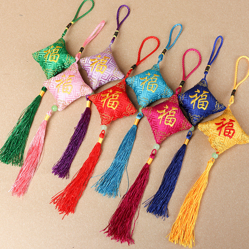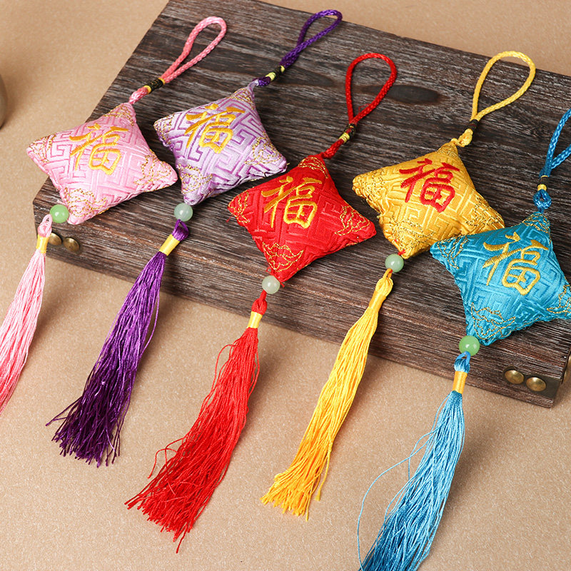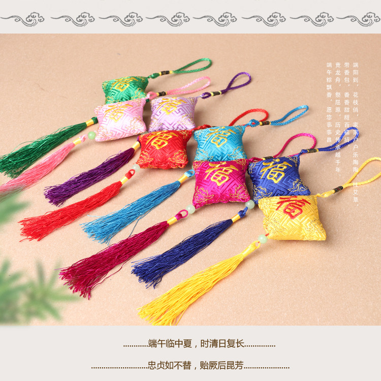 Square blessing sachet Dragon Boat Festival sachet portable mini children's car pendant Embroidered Tassel Wormwood insect bag