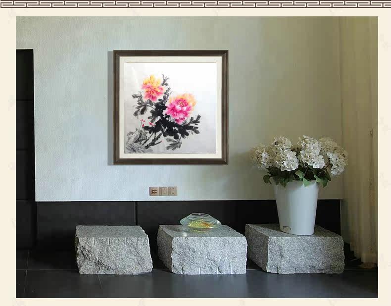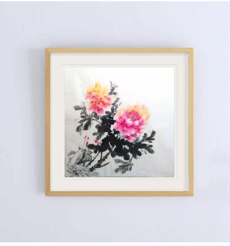 Hand drawing 4-ruler hopper Fang Little goods State painting Mudan flowers open rich and expensive painting Heart writing Flowers Birds Living-room Bedroom Decoration Hanging Paintings