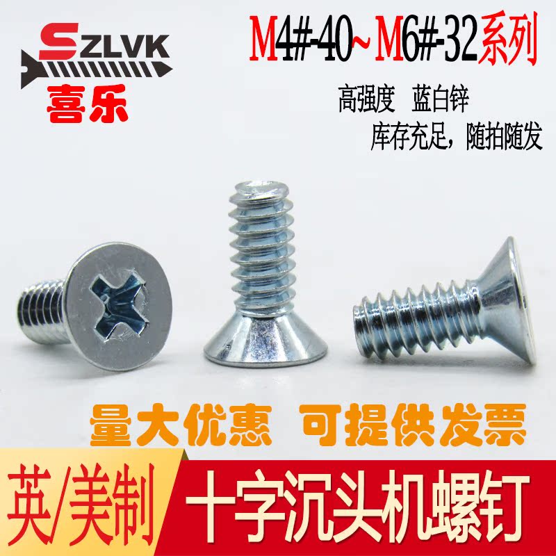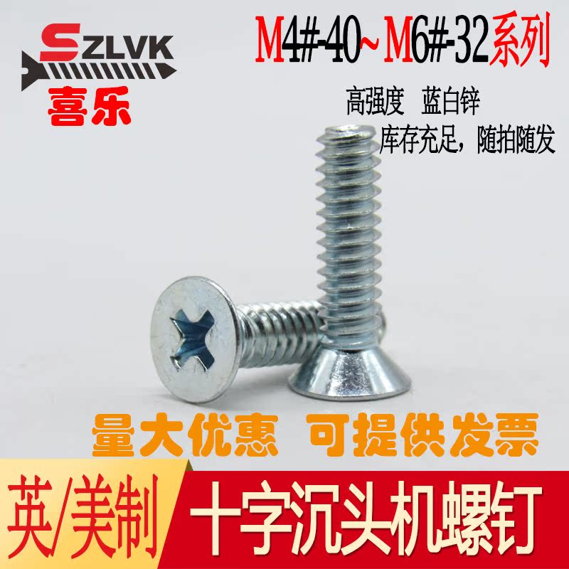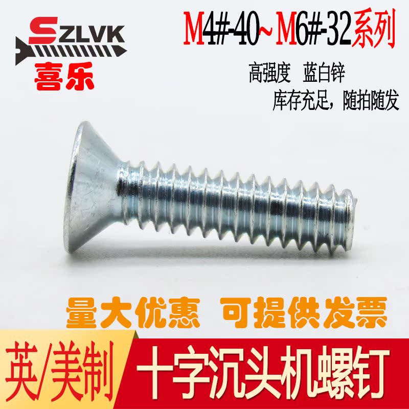 Galvanized Beauty Cross Sunk Head Machine Screws Yinggui Cross Flat Head Screw Flat Machine 4#-40 6#-32 Blue White