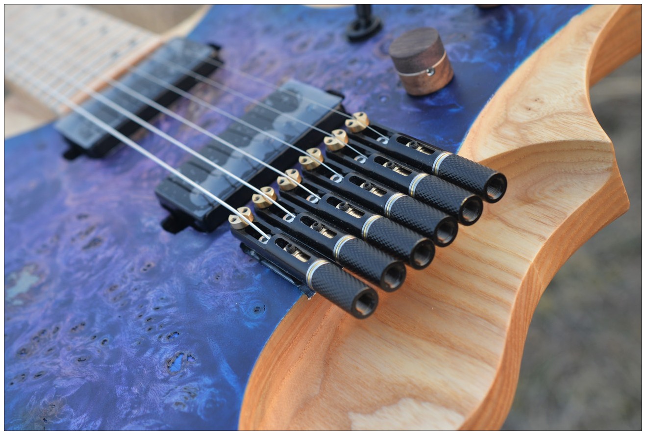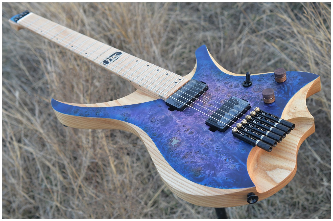 NK Headless Electric Guitar Blue Flame Maple Guitar ASH Body Flame Maple Neck Luminous side note