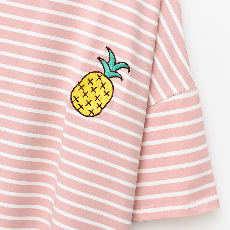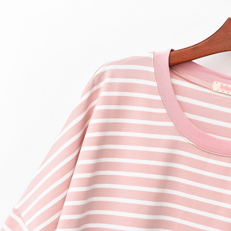 Pure Cotton Sleeping Skirt Woman Summer Casual Short Sleeve Striped Round Collar Big Code Loose Fat MM Home Skirt Sleepwear Long Skirt-Taobao
