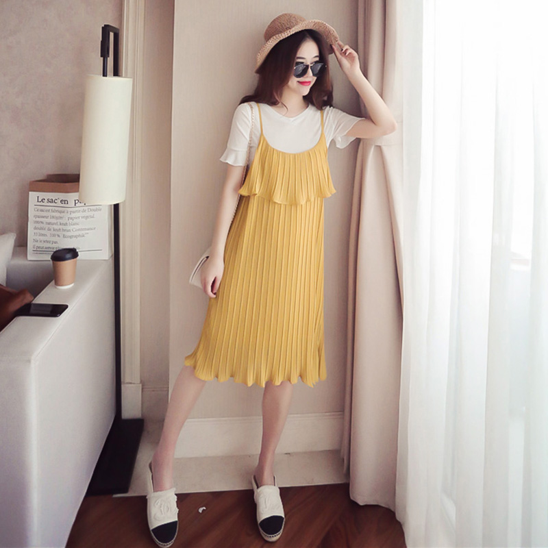 2021 thin suit Pregnant women fashion models loose summer suspender dress ocean school out skirt two-piece set