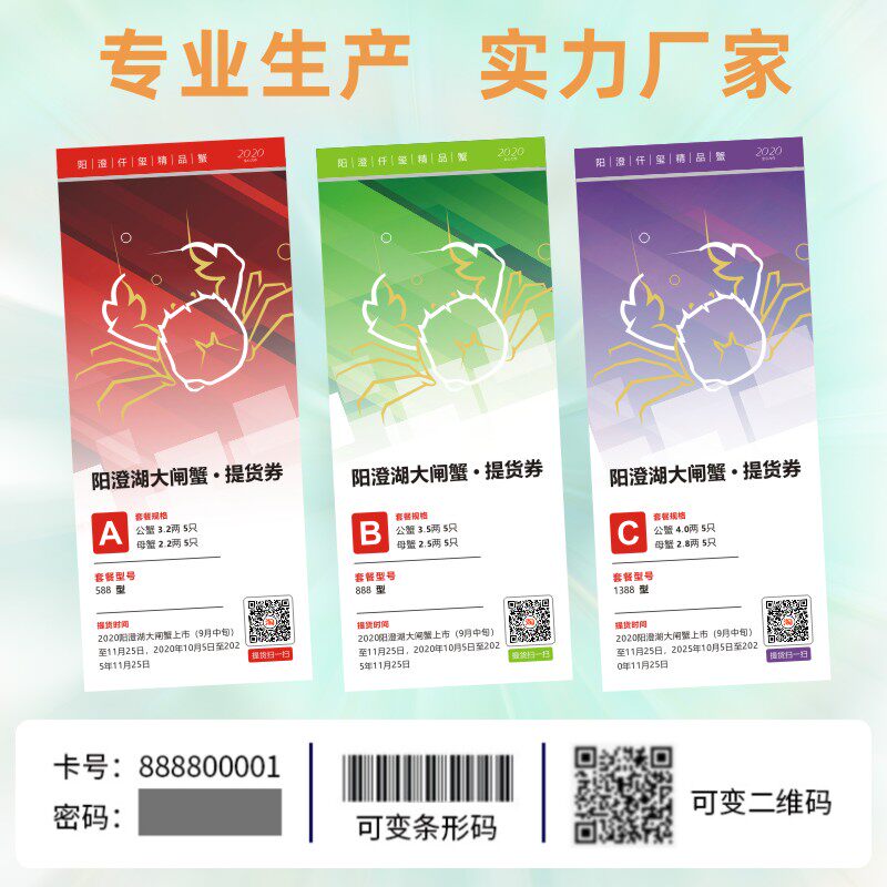 Customized Mid-Autumn Festival Holiday Employee Gift Voucher Voucher Supermarket Crab Pickup Password Voucher Anti-Counterfeit Printing