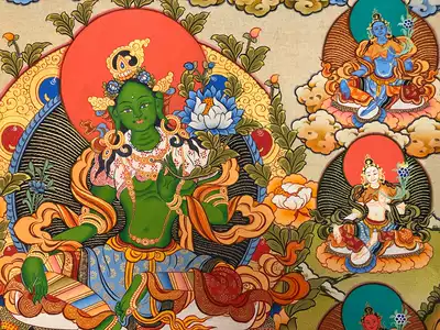 Green Duomo Nepal pure hand-painted Thangca painting boutique porch decorative painting hanging painting Tibetan Buddhist statue 61*43
