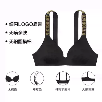 3 pieces 35 folded up) Vimi fine flash Logo letter shoulder strap bra without steel ring underwear women thin summer