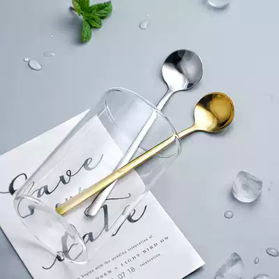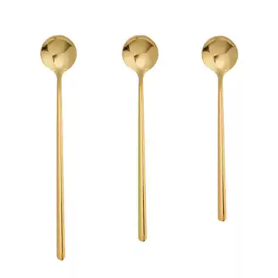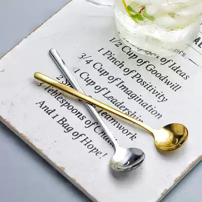 Stainless steel coffee spoon European honey mixing spoon Small round spoon Coffee spoon long handle bar spoon Golden Korean small spoon