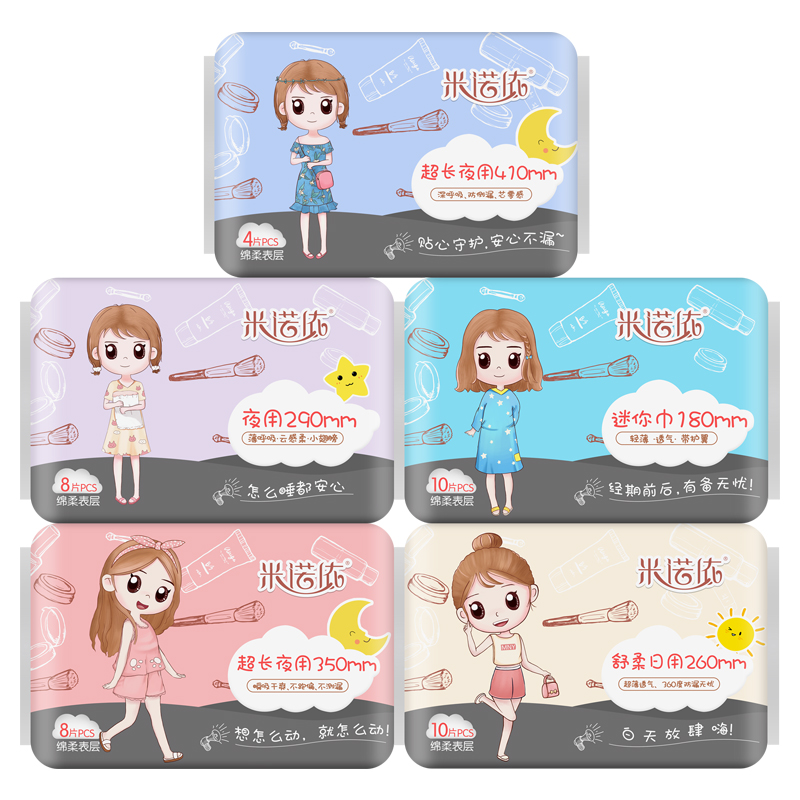 Minoyi sanitary napkin pajamas rice pocket bear day and night negative ion aunt towel 68 yuan 10 pack upgrade version