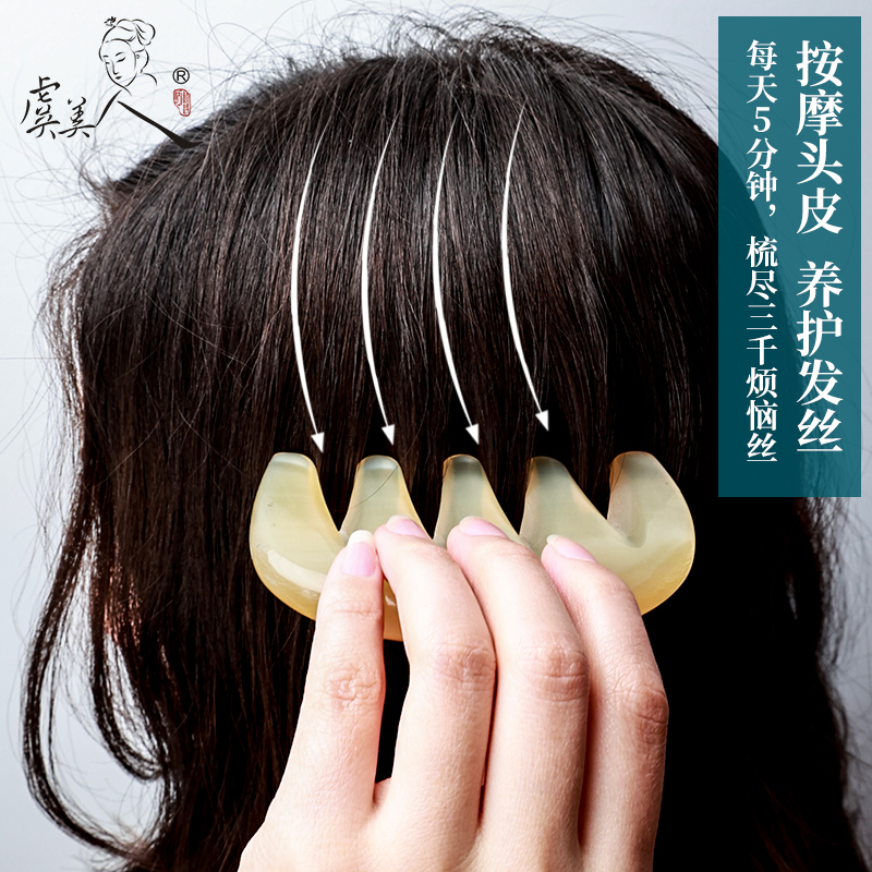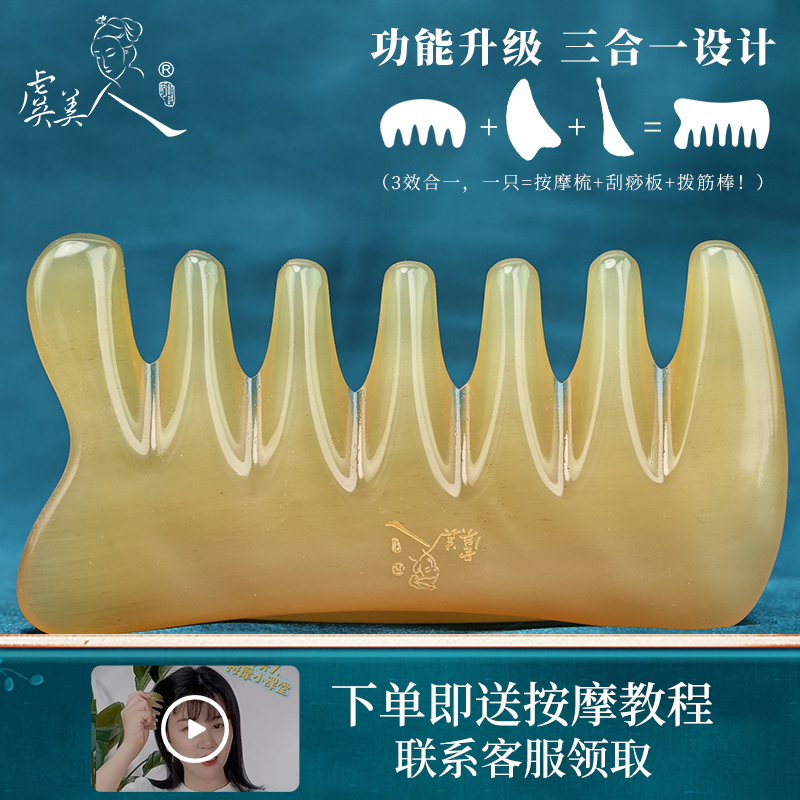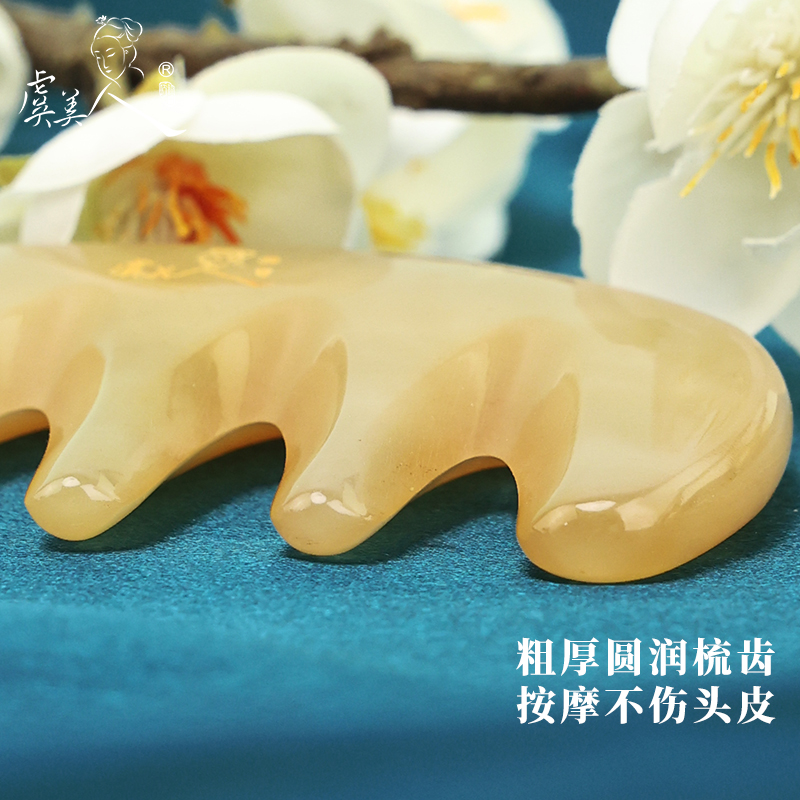 Yumeiren natural horn comb five-tooth scalp scraping head meridian five-meridian massage comb hair loss wide-tooth household