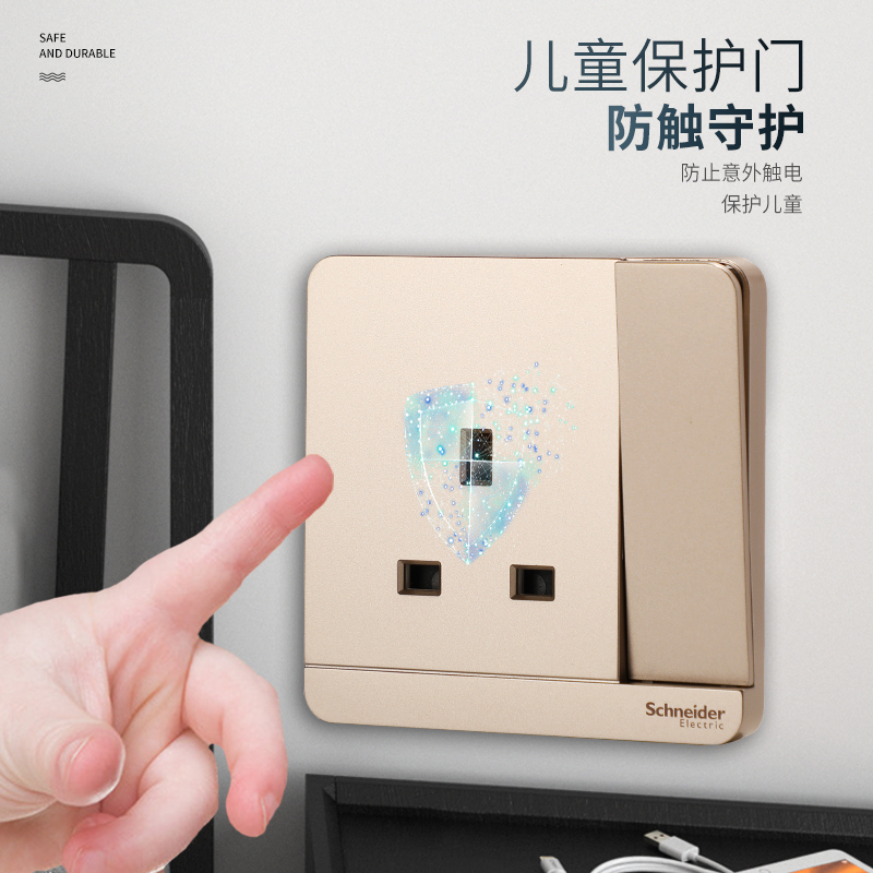 Schneider deduces twilight golden English - style switch panel for switch panel 13A three - hole square foot belt switch