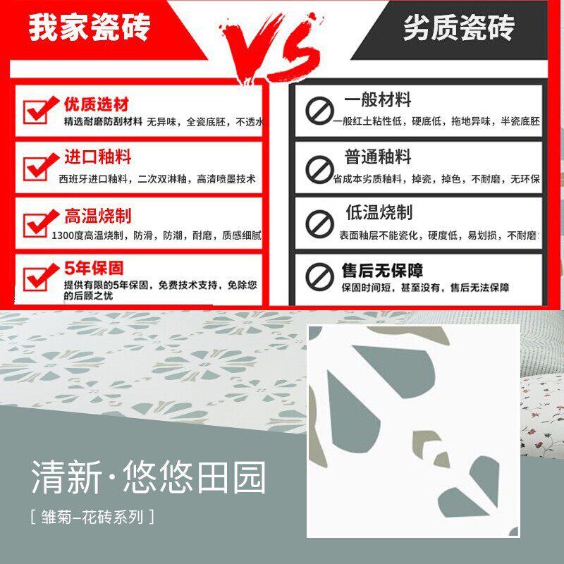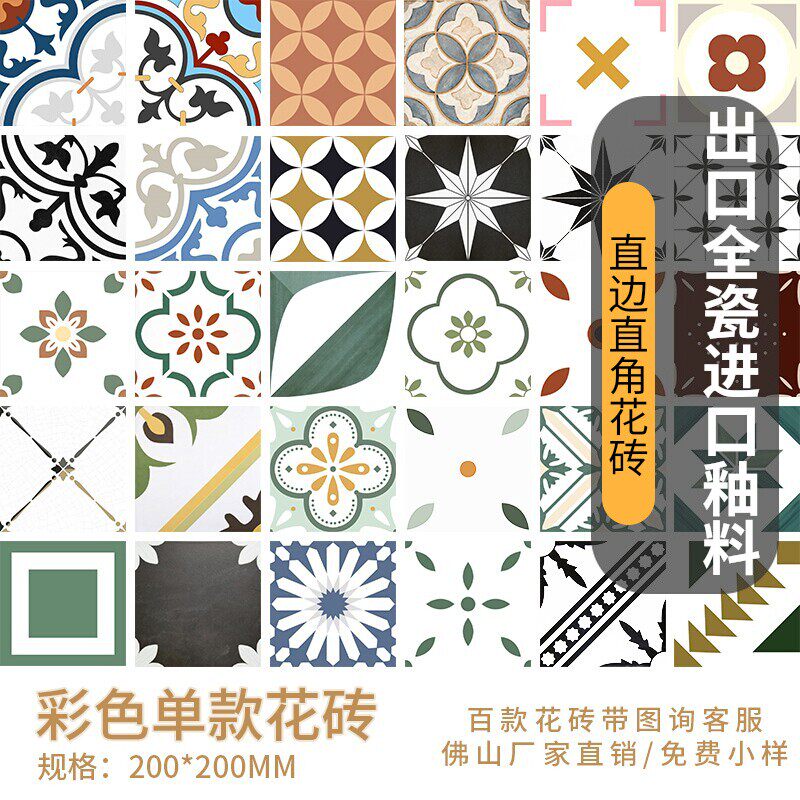 Small frescoed flower brick Nordic art flower sheet green non-slip kitchen Xuanguan tile make-up room floral floor tiles