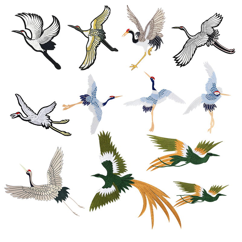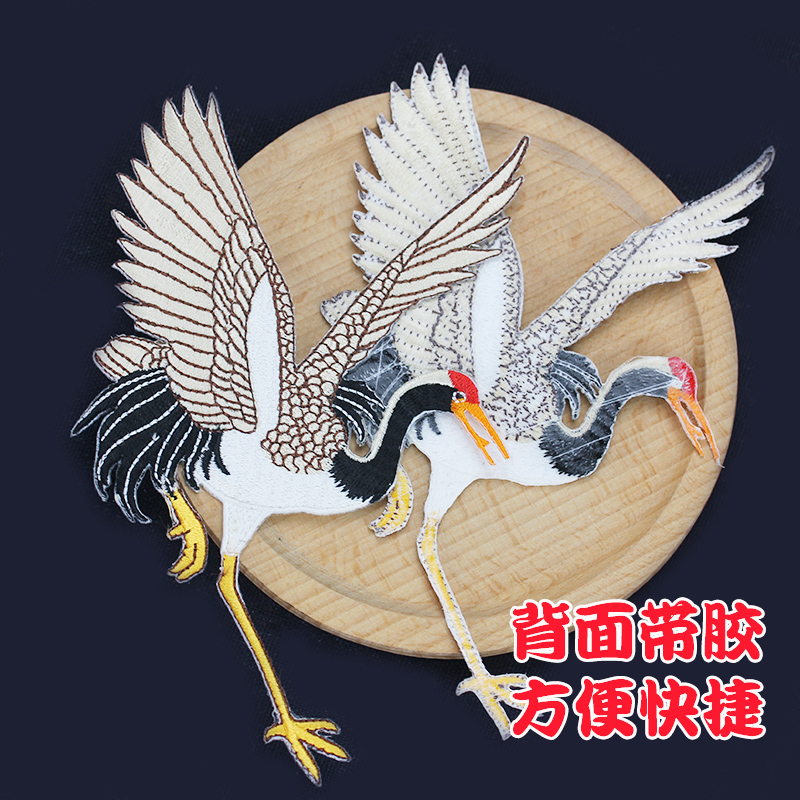 Ethnic style embroidered cloth patch clothes large patch Crane embroidery pattern repair program adhesive fashion coat decal