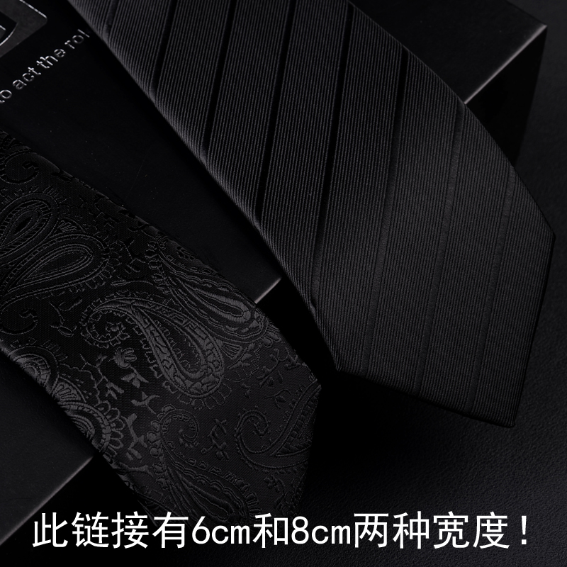 Black tie-free tie tie men's easy to pull to work students lazy zipper easy to pull solid color tie men fashion