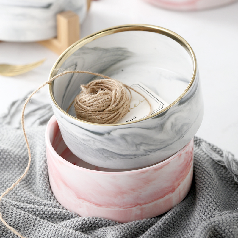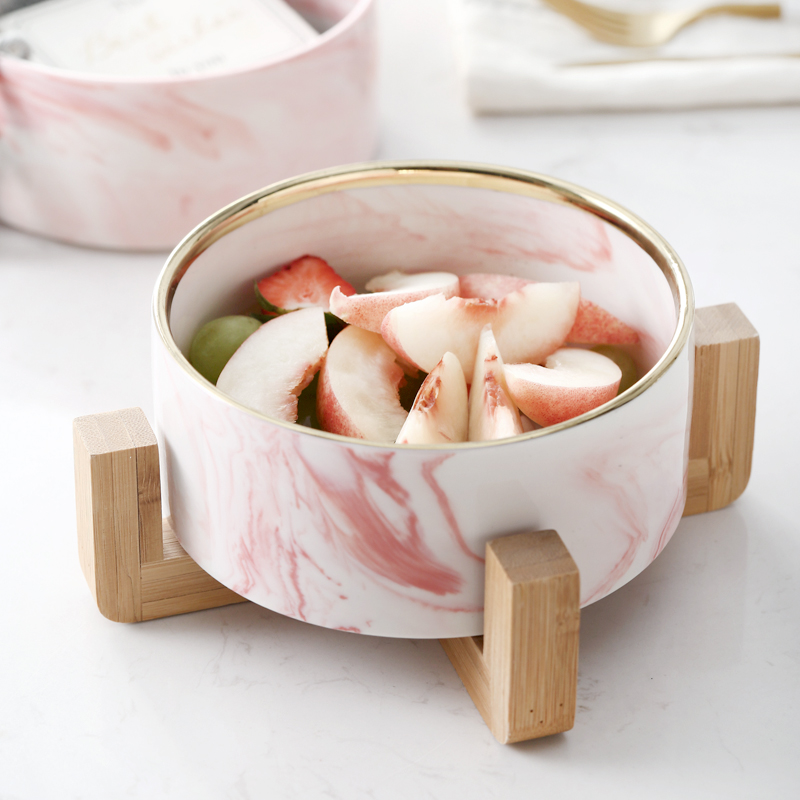Nordic marble light luxury home ceramic parlor fruit salad bowl noodle bowl soup bowl tableware with wooden frame