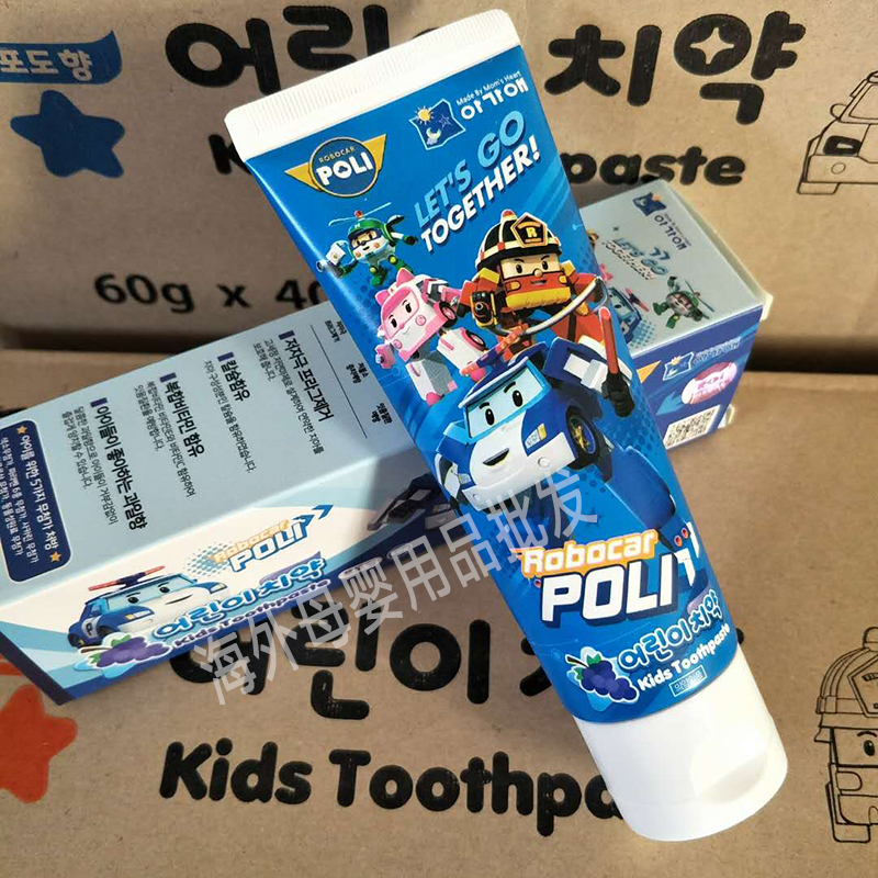 South Korea I Coe deformed police car Perley POLI Children's toothpaste 2-12 years old swallowed with protective tooth fruit taste toothpaste
