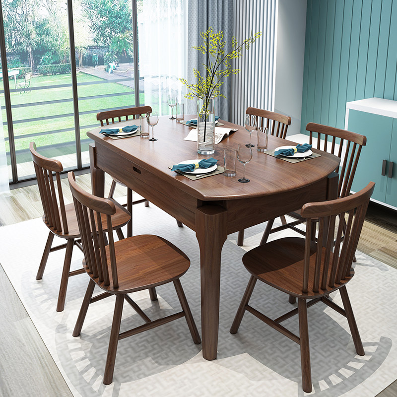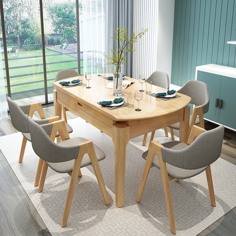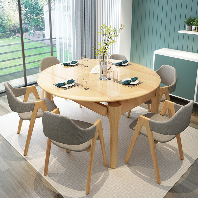 Nordic all solid wood dining table and chair combination large and small household log dining table modern minimalist telescopic folding dining table