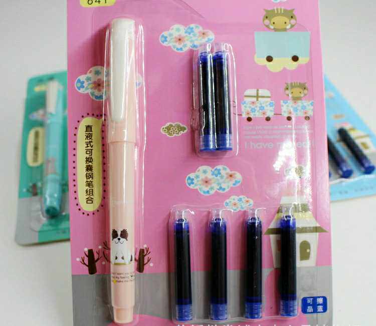 641 Straight liquid ink-changing sac pen student writing pen suit a pen with a pen with 6 ink sacks blue