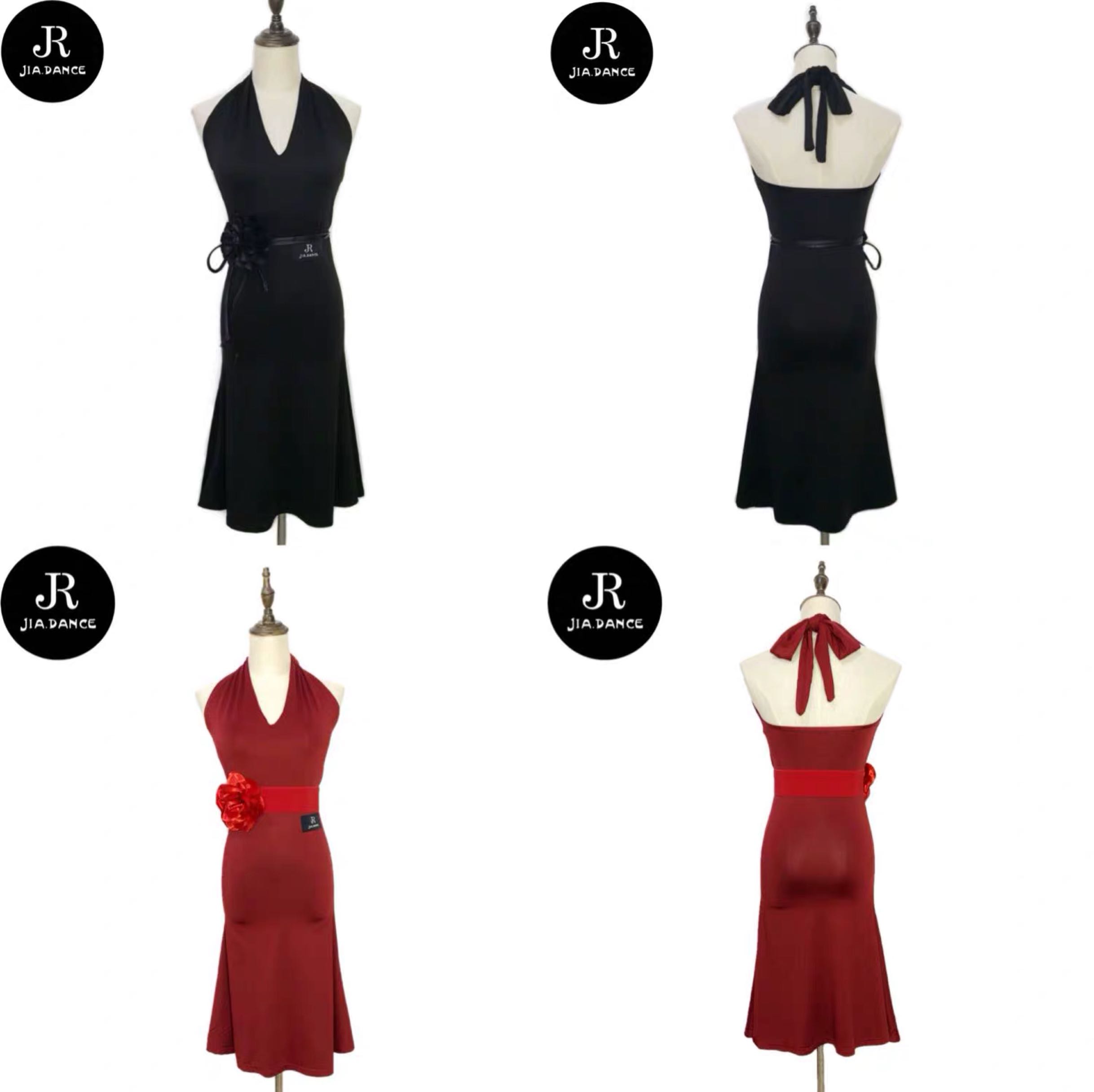 JIA DANCE Latin dance new foreign dress female hanging neck and back Latin American dress with belt R24