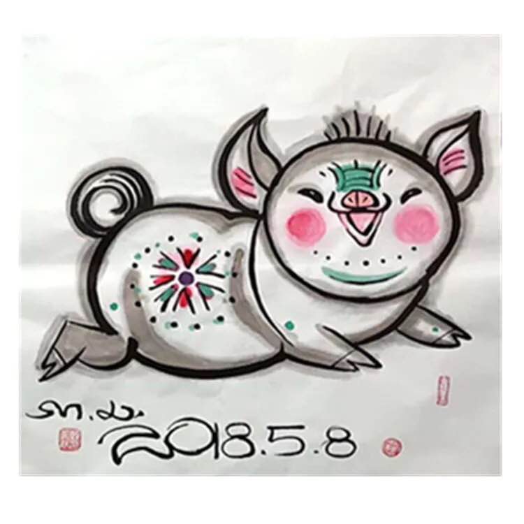 Famous Painting and Painting Han Meilin State Painting Four-ruler Bullfang Animal Zodiac Pig Hands Plotter to Write a Famous Character Painting-Taobao
