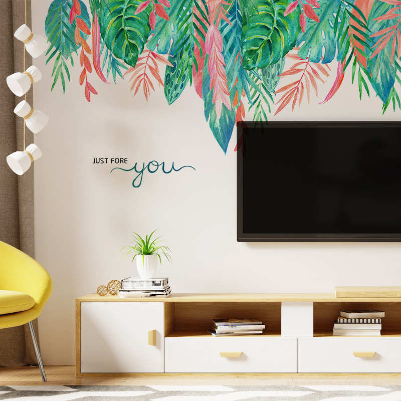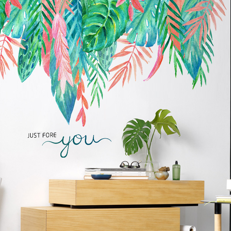 Fresh Green Planting Wall Patch Bedroom Cozy Ins Wind Decoration Stickers Dorm Wall Paper Self-Adhesive Background Wall Wallpaper Self-Adhesive