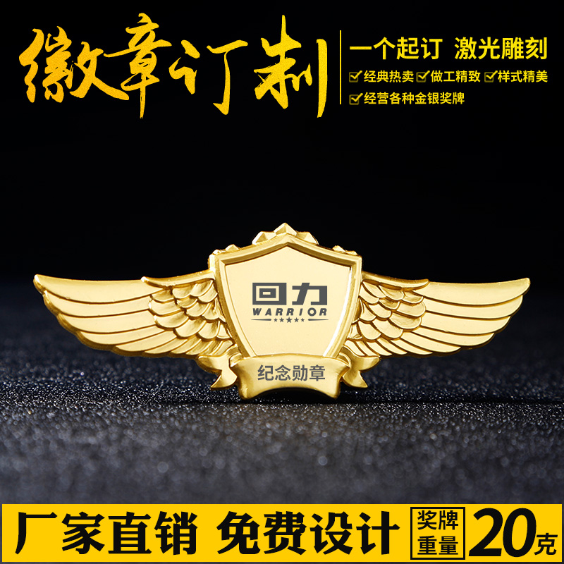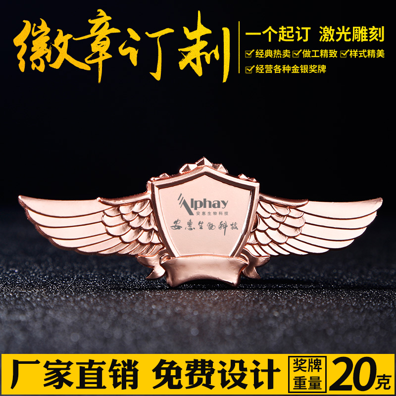 Metal wings badge excellent employee brand service star badge custom made company badge badge class badge