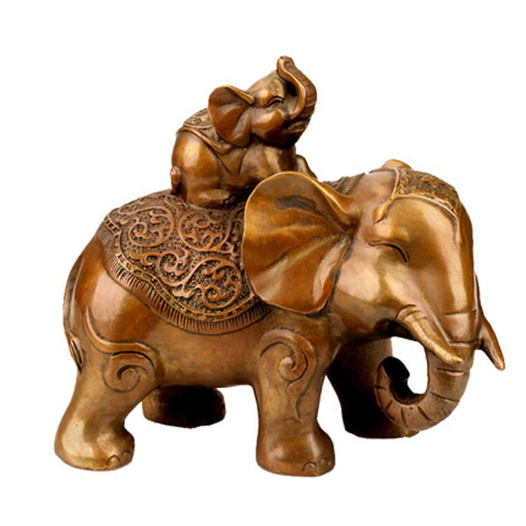 Pure copper Fullous mother and son pair of bronze elephants swaying bronze Absorbent Objects Crafts Gift Whole Joe Living Room Retro
