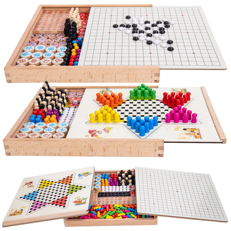 Beech Wood Flight Chess Five Chess Jump Chess 27 Hop 1 Multi-functional chess Children Puzzle Toys Big Game Chess