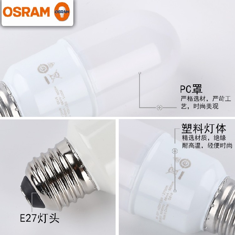 OSRAM OSRAM LED bulb T-shaped cylindrical 7W9w12w cone E27 mouth 4K neutral light strip bulb