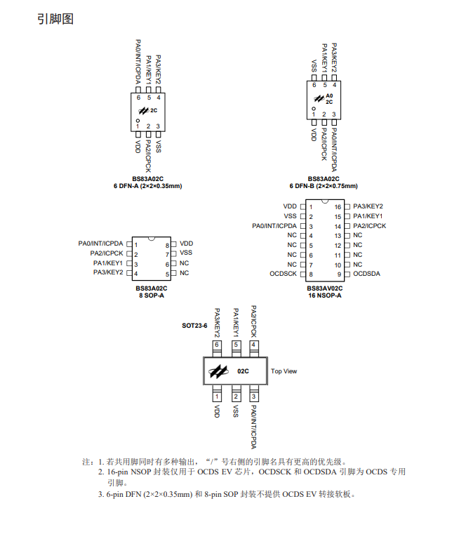BS83A02C SOT23-6 Taiwan original 2KEY touch-type FLASH microchip machine