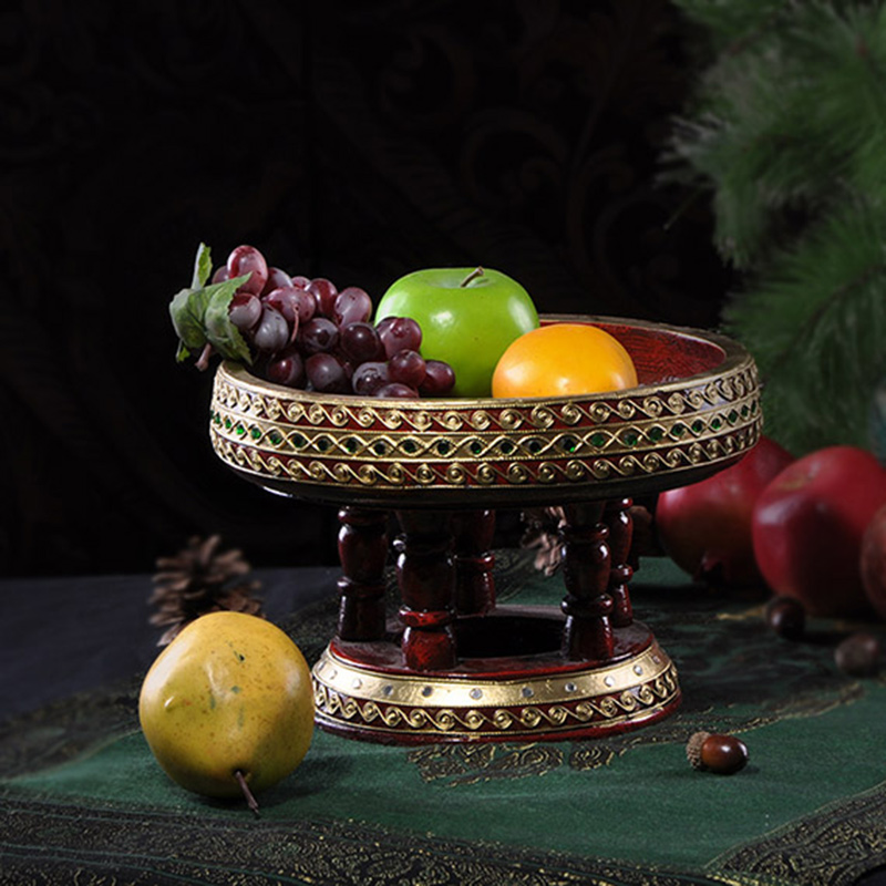 Thailand Imported Craft Gifts Decorative Southeast Asian Solid Wood Decorative Fruit Plate Living Room Storage Household Dried Fruit Plate Entrance Supply Plate