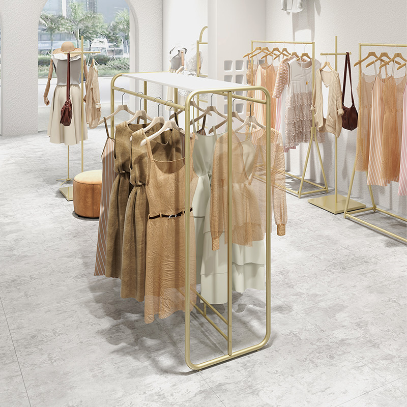 Clothing store island rack Floor-standing double-row hanging clothes pole Men's and women's clothing store hanger display shelf Clothes display rack