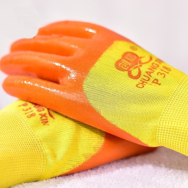 318 Pure Glue Thickened PVC Half-hanging Site Oil Resistant Oil Proof Waterproof Oxford Rubber Abrasion Resistant Gloves-Taobao
