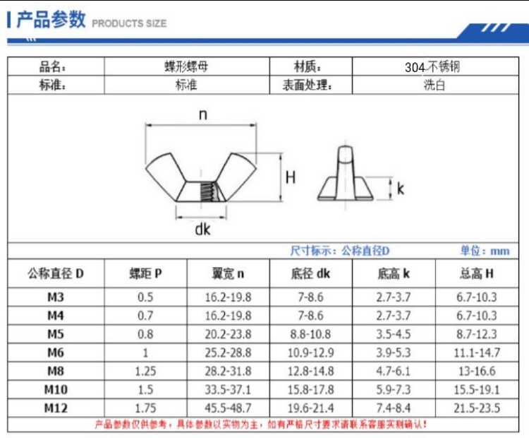 304 stainless steel butterfly nut GB62 butterfly mother DIN315 Yuanbao nut Sheep nut m4m6m8m10m5