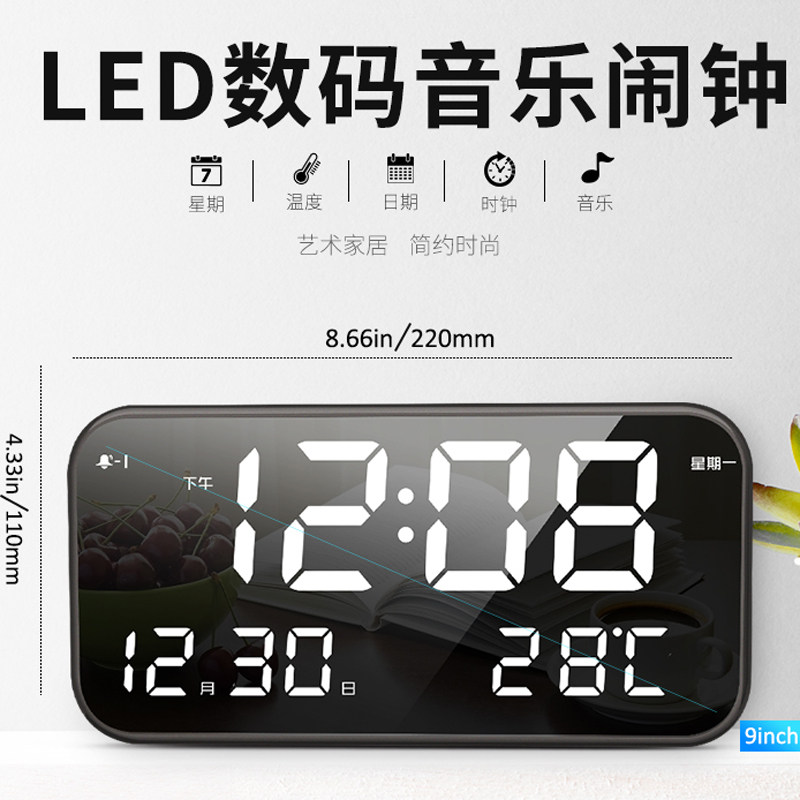 Charging alarm clock table clock Electronic music ringtone Multi-function luminous mute bed USB student smart digital