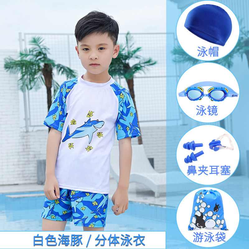 817 boys' split swimsuit-blue Superman 817 boys' split swimsuit-white dolphin 817 blue Superman five-piece 817 White Dolphin five-piece weight 60 Jin or please do not