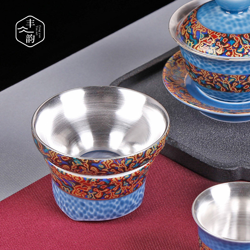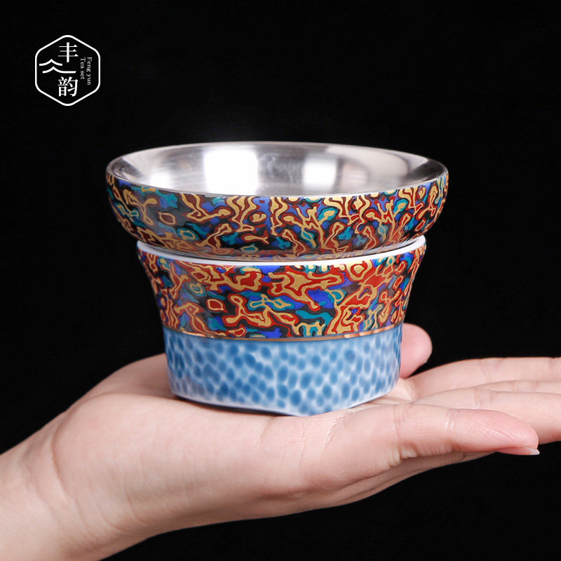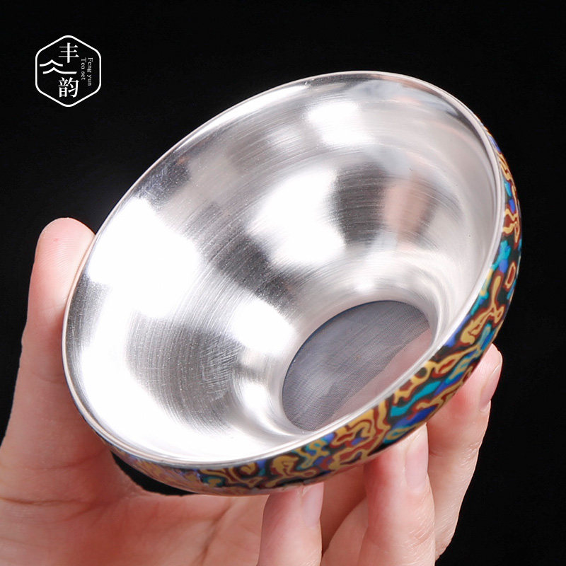 Personalized tea filter tea leakage screen tea filter screen gilt silver lacquer blue hammer pattern kung fu tea set tea ceremony accessories