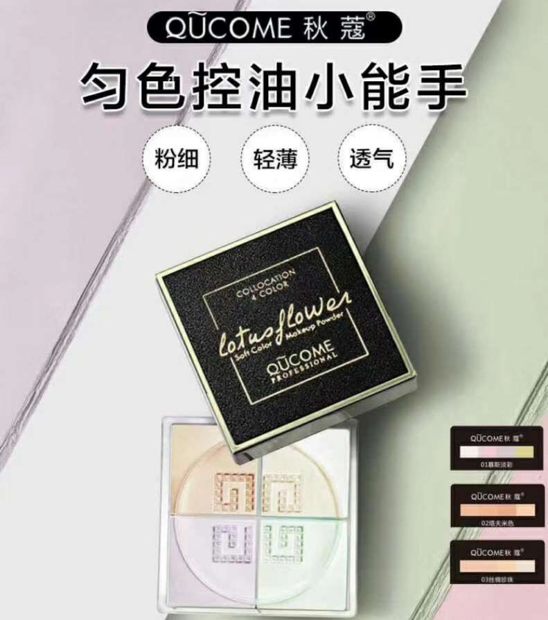 Qiu Kou Golden Lotus Mineral Four Palace Loose Powder Set Makeup Powder Honey Powder Oil Control Sticker Skin Lasting Long-lasting No Makeup Waterproof Four Colors