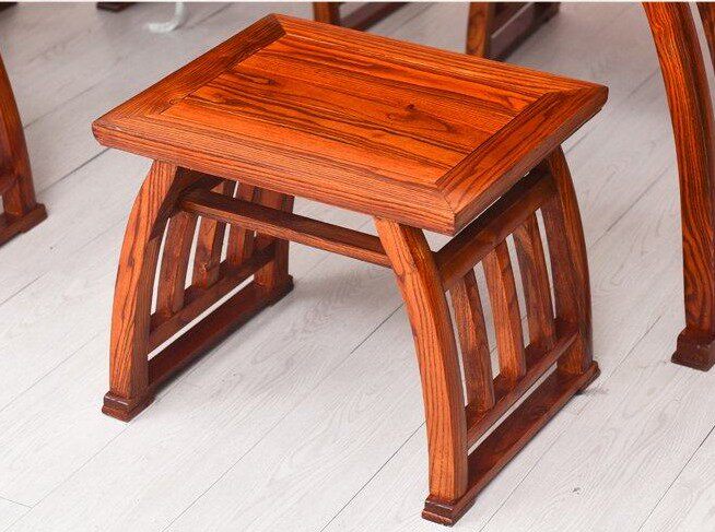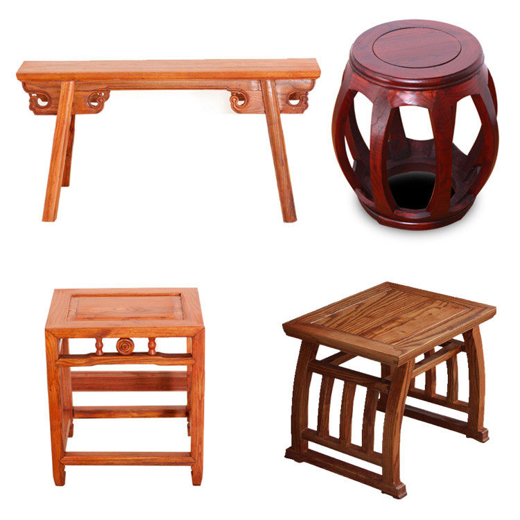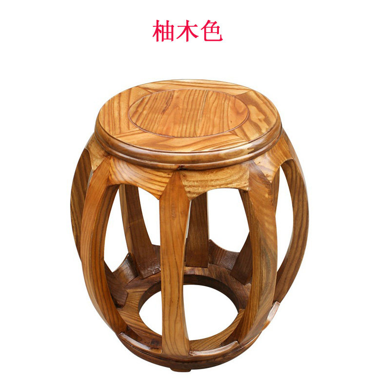 Old Elm Wood Chinese Imitation Antique Bronze Money Bench Red Flowers Pear Solid Wood General Bend Leg Long Strip Saddle Round Drum Stool Dining Circle Chair-Taobao