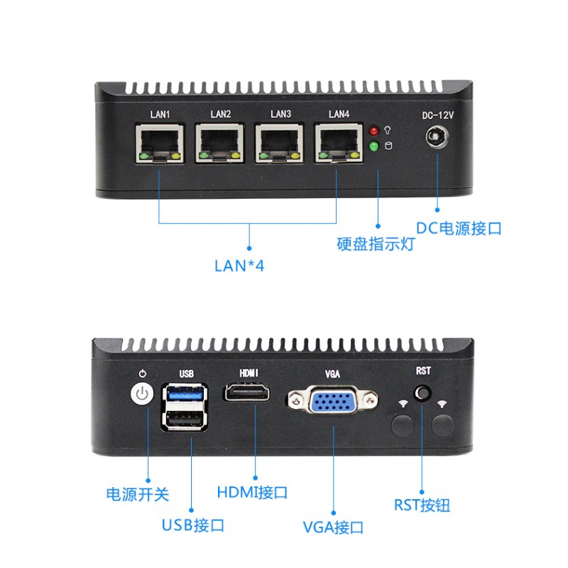 J1900 Four Network Router Ro ikuai server controls mini host Gigabit i211 network card