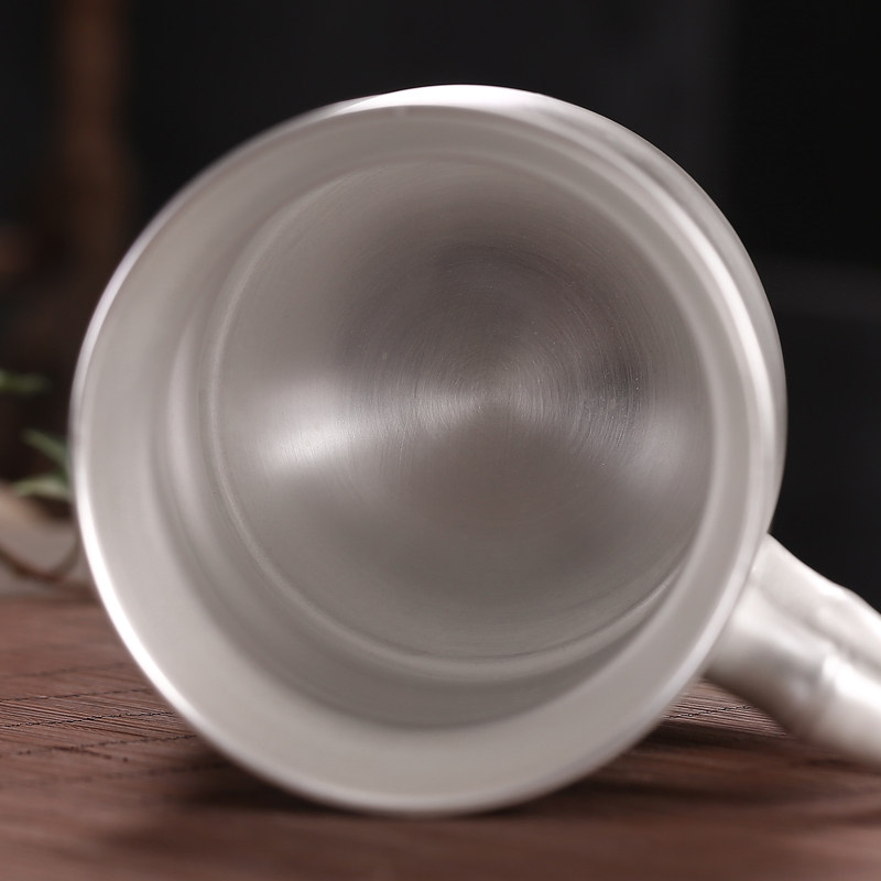 Office Teacup 999 Sterling silver liner with lid with filter tea water separation Couple mug Personal silver Teacup